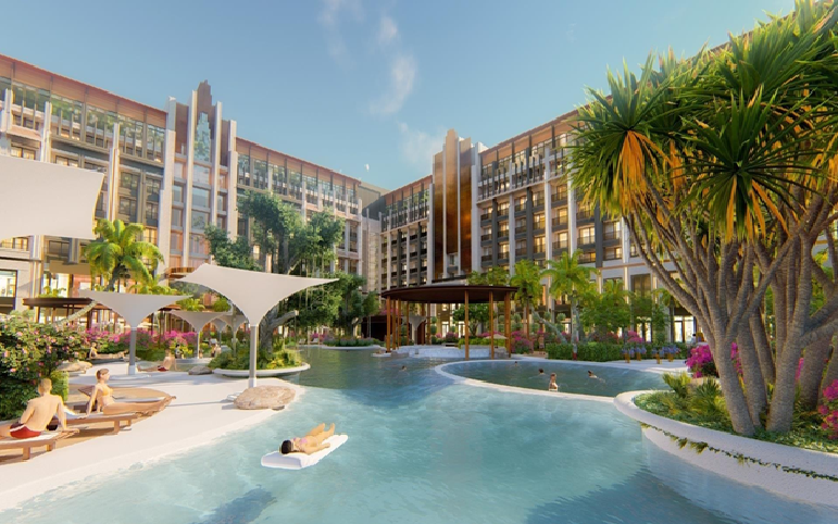Bên cạnh đó, The 5way Phu Quoc được thiết kế hình cánh cùng với hệ thống cây xanh, mặt nước trải dài khắp dự án mang đến không gian nghỉ dưỡng rộng thoáng, trong lành và mát mẻ như ở resort 5 sao.